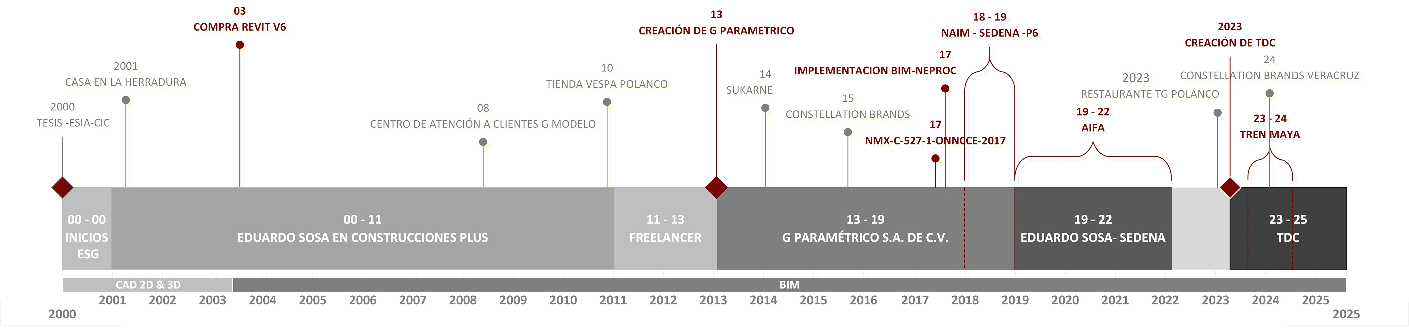 La trayectoria de Eduardo Sosa siempre ha estado ligada a la innovación. En el año 2000, su tesis de realidad virtual para un Parque Ecológico le valió una mención especial y sentó las bases de su interés por la tecnología. Tres años después, se convirtió en uno de los primeros usuarios de Revit V6.0 en México, una herramienta que revolucionó su trabajo en Construcciones Plus y que le permitió participar en proyectos habitacionales, comerciales e industriales durante una década. Esta experiencia temprana con la digitalización lo convenció del poder de la tecnología para transformar la industria.A medida que avanzaba en su carrera, adoptó nuevas herramientas tecnológicas que revolucionaron su enfoque hacia el diseño y la gestión de proyectos.